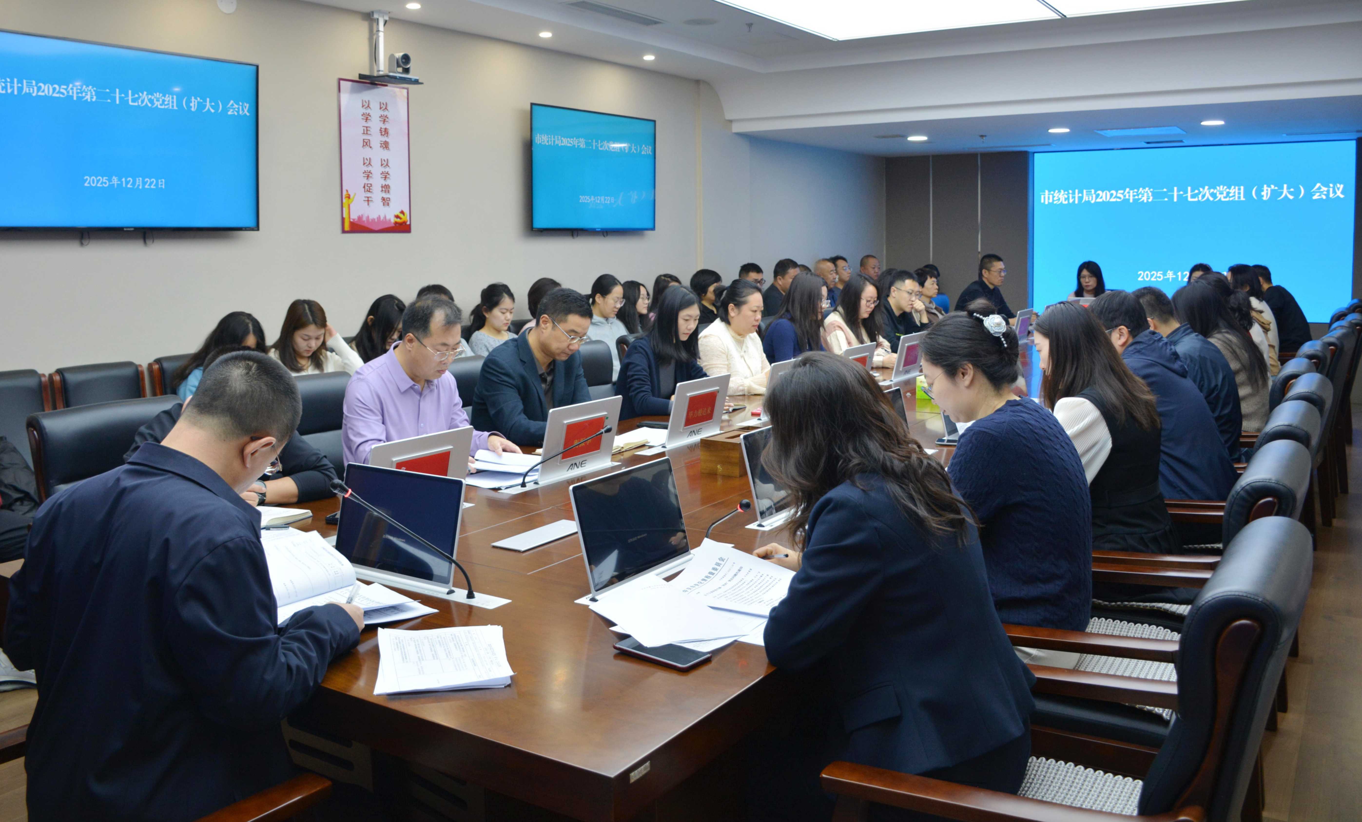 12月22日,市统计局召开党组(扩大)会议,传达学习中央经济工作会议精神,深入贯彻习近平总书记关于统一战线工作的重要论述及相关文件要求,同步学习中央、自治区和市委近期重要会议与文件精神,研究部署具体贯彻落实举措。局党组书记、局长蔡雨成主持会议并作安排部署。