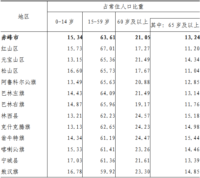 12个旗县区65岁及以上老年人口比重均超过7%,其中, 6个地区65岁及以上老年人口比重超过14%。