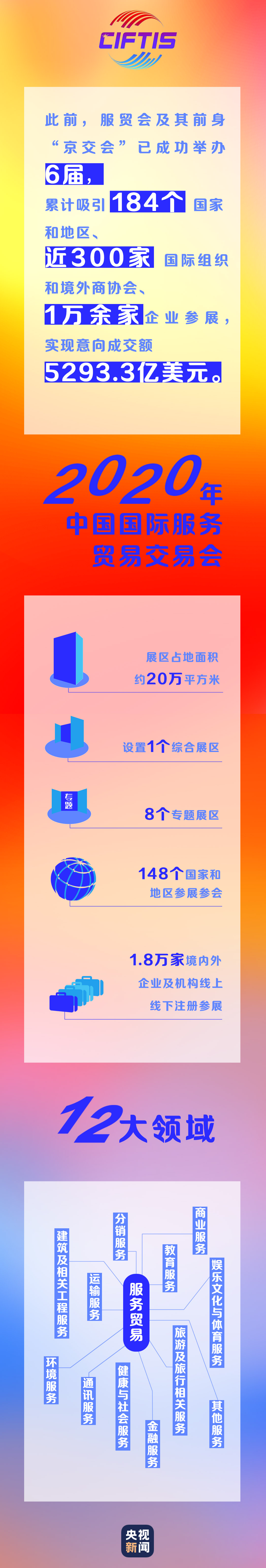 2020年服贸会在北京开幕,148个国家和地区的国际组织、驻华大使馆、境外商协会及机构和企业参加。中国市场,世界机遇。