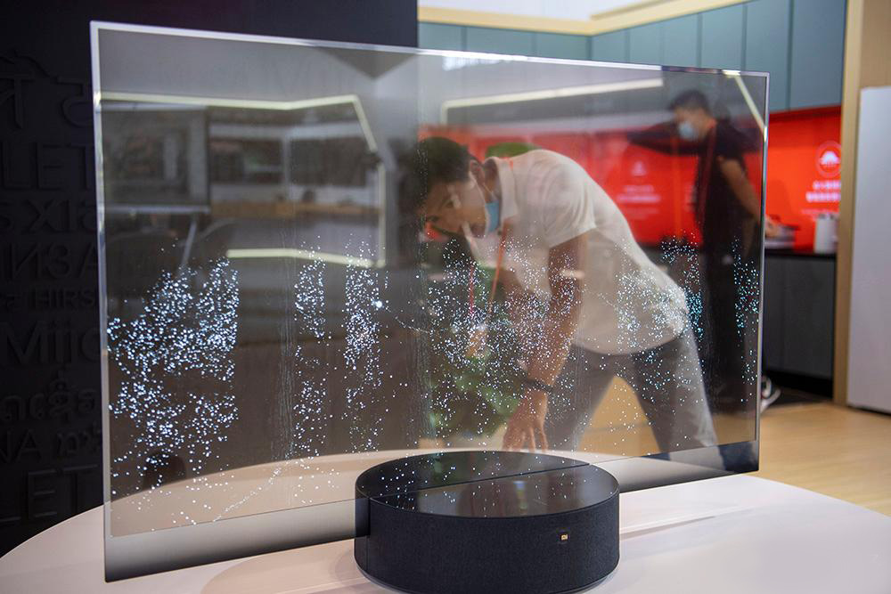2020年服贸会综合展区,参观者正在感受透明电视。